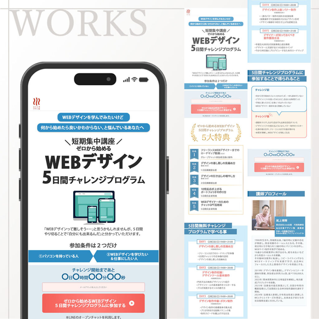 スマートフォン、PC対応のランディングページやキャンペーンなどのページを作成します。